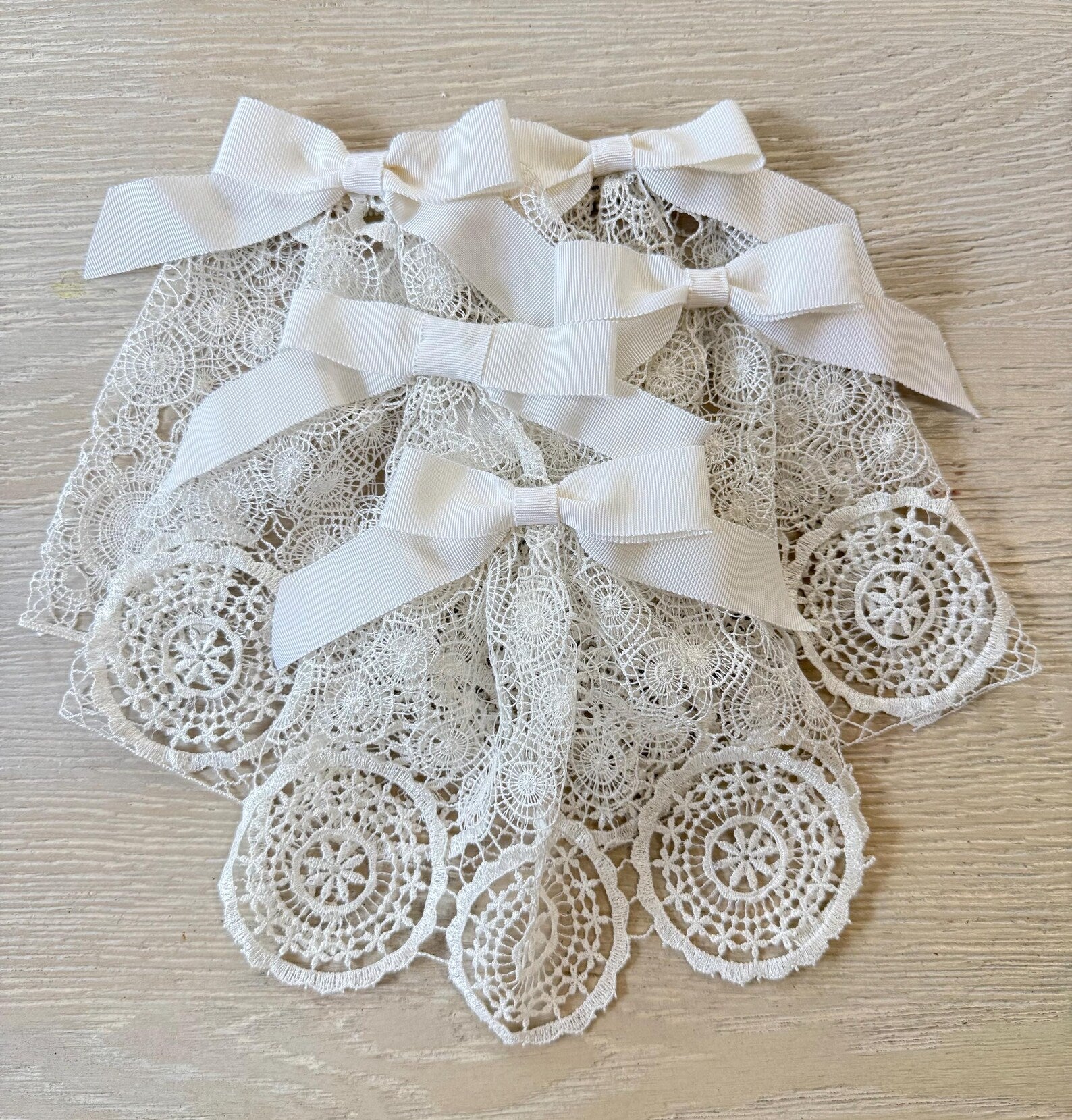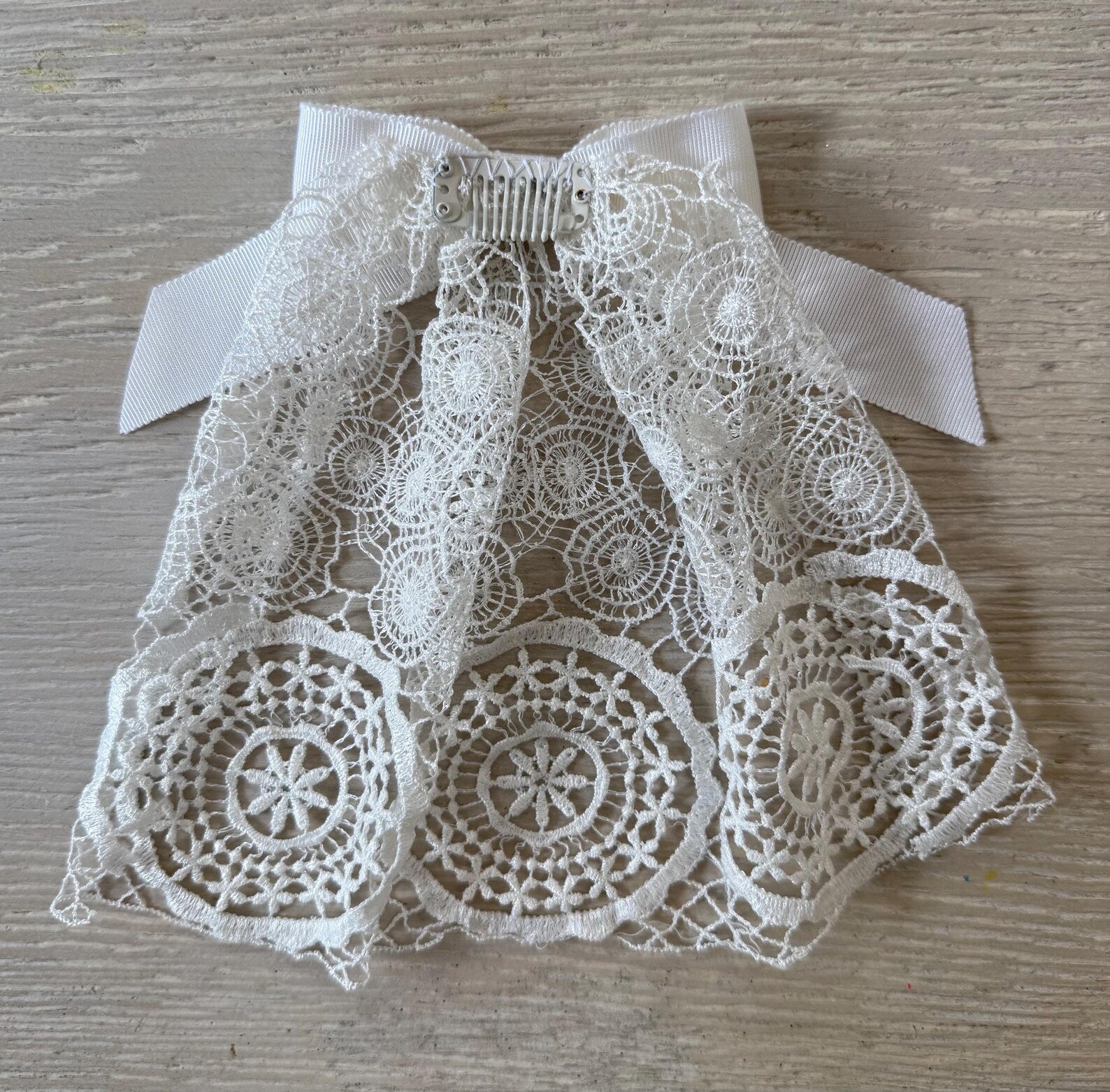 Embroidered Lace Hair Doily with Grosgrain Ribbon Bow C W